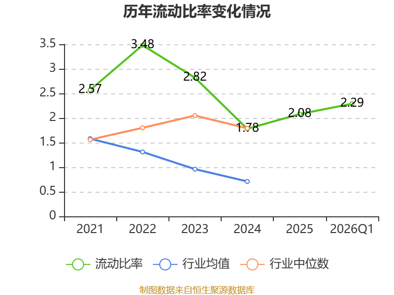 2026年第一季度,公司流动比率为2.29,速动比率为1.74。