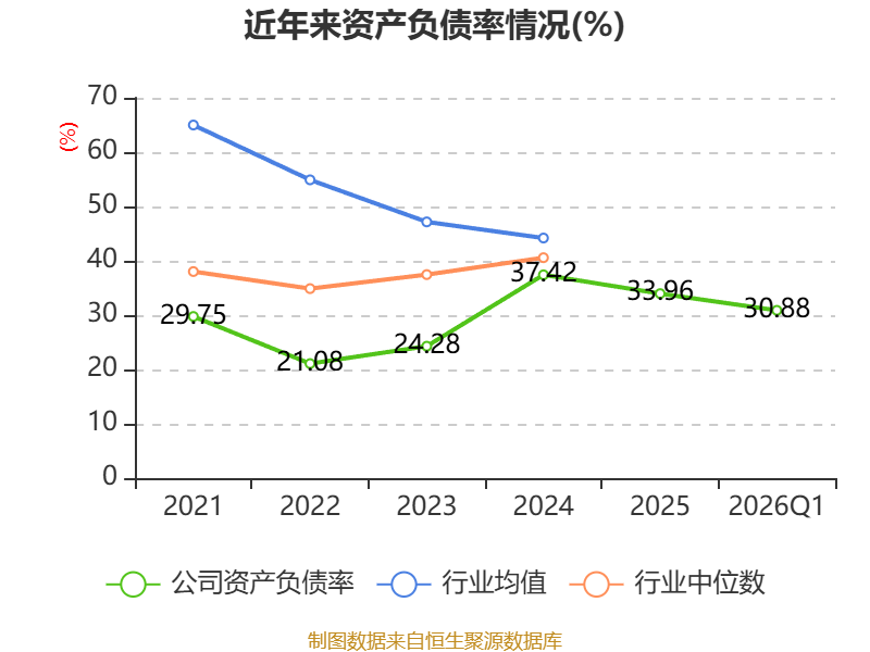 负债重大变化方面,截至2026年一季度末,公司应付票据及应付账款较上年末减少14.44%,占公司总资产比重下降2.21个百分点;应付职工薪酬较上年末减少63.91%,占公司总资产比重下降1.24个百分点;合同负债较上年末增加71.15%,占公司总资产比重上升1.15个百分点;短期借款较上年末减少20.01%,占公司总资产比重下降0.75个百分点。