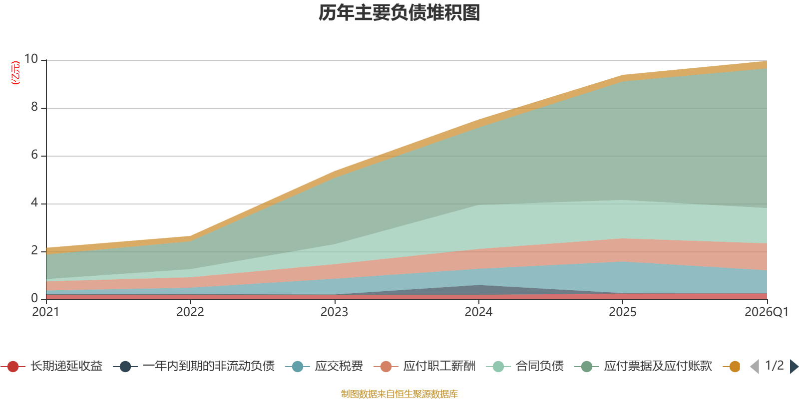 负债重大变化方面,截至2026年一季度末,公司应付票据及应付账款较上年末增加17.83%,占公司总资产比重上升0.68个百分点;应交税费较上年末减少27.78%,占公司总资产比重下降0.68个百分点;合同负债较上年末减少8.14%,占公司总资产比重下降0.38个百分点;应付职工薪酬较上年末增加16.38%,占公司总资产比重上升0.11个百分点。