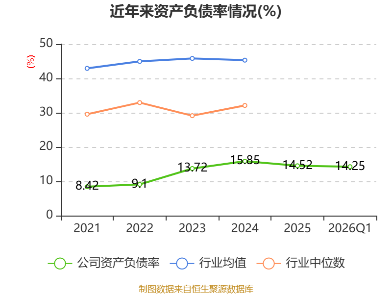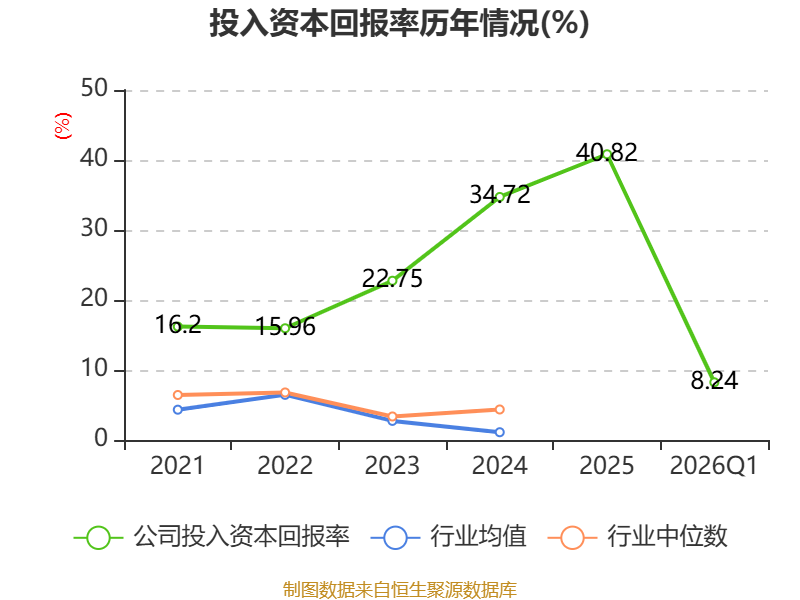 盈利能力方面, 2026年一季度公司加权平均净资产收益率为8.57%,同比上升0.44个百分点。公司2026年第一季度投入资本回报率为8.24%,较上年同期上升0.45个百分点。
