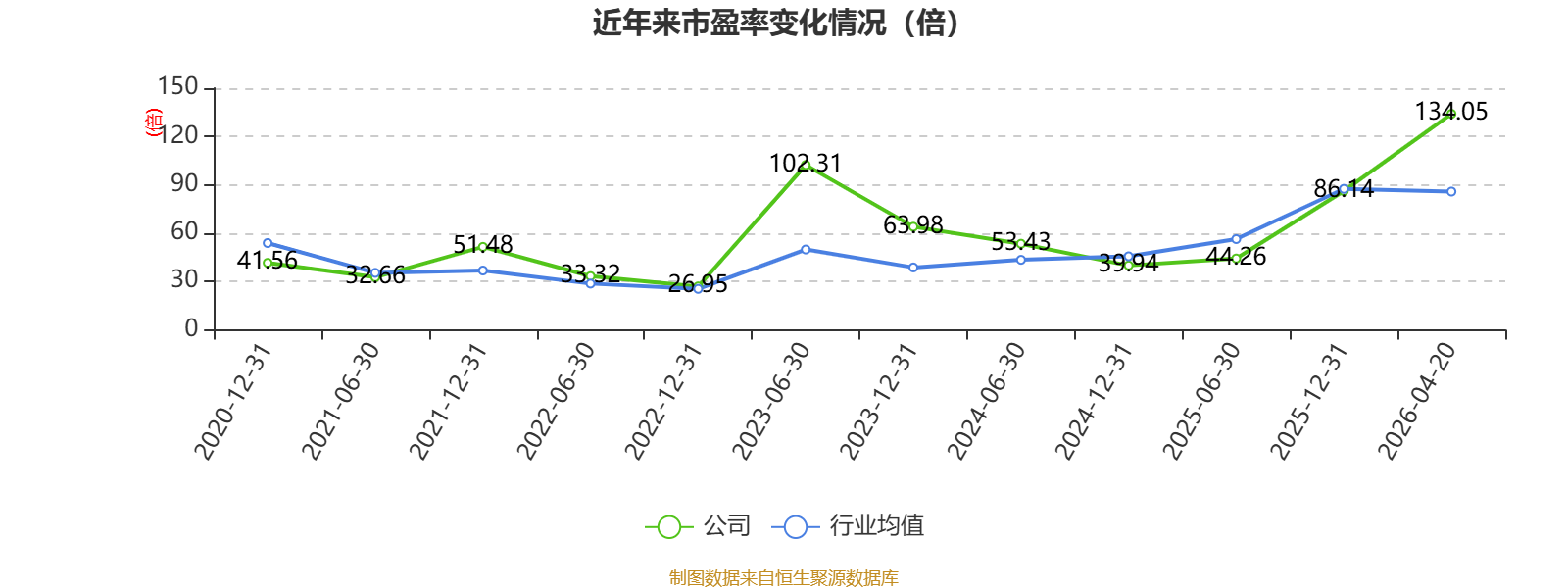 以4月20日收盘价计算,天孚通信目前市盈率(TTM)约为134.05倍,市净率(LF)约48.69倍,市销率(TTM)约52.47倍。