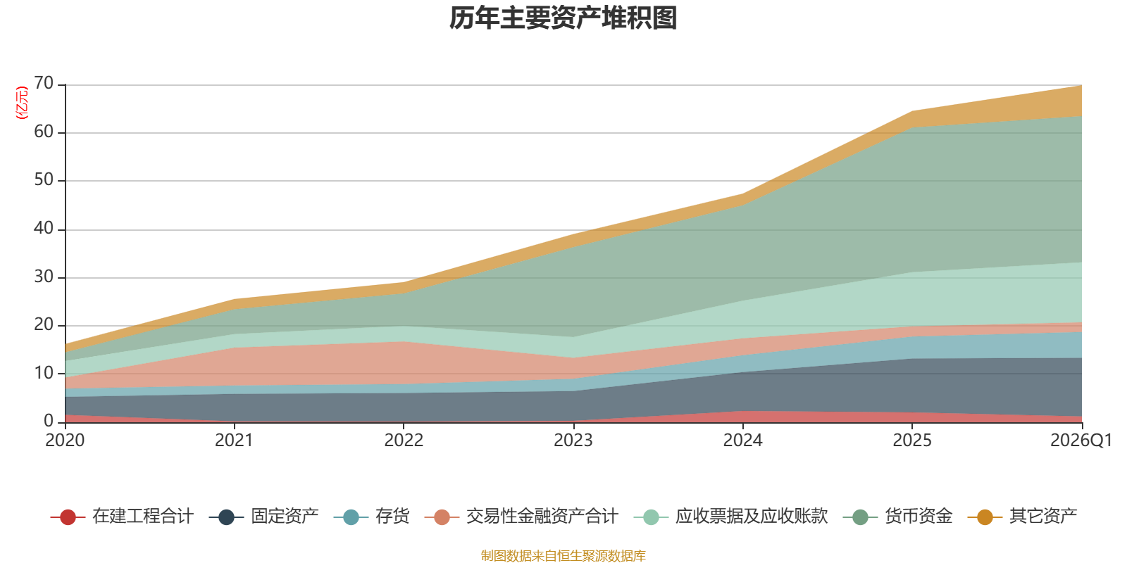资产重大变化方面,截至2026年一季度末,公司货币资金较上年末增加1.01%,占公司总资产比重下降3.11个百分点;应收款项融资较上年末增加714.14%,占公司总资产比重上升1.7个百分点;其他非流动资产较上年末增加400.19%,占公司总资产比重上升1.56个百分点;在建工程合计较上年末减少41.62%,占公司总资产比重下降1.45个百分点。