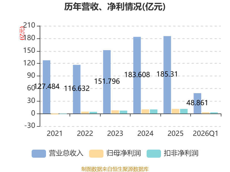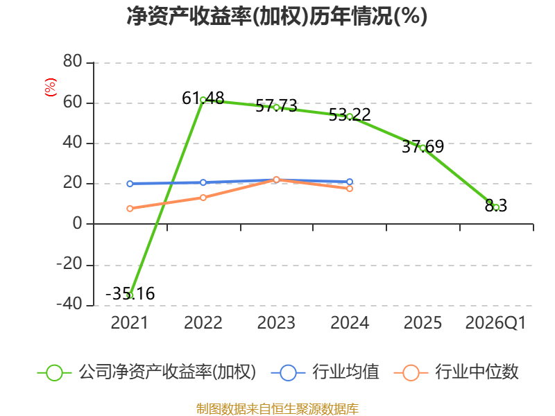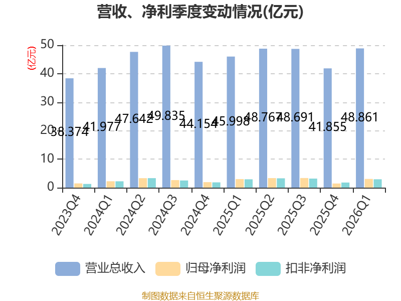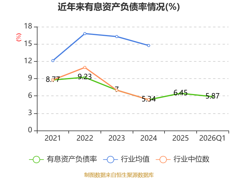 盈利能力方面, 2026年一季度公司加权平均净资产收益率为8.3%,同比下降3.45个百分点。公司2026年第一季度投入资本回报率为8.92%,较上年同期下降2.43个百分点。