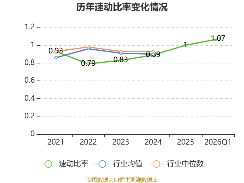 2026年第一季度,公司流动比率为1.2,速动比率为1.07。