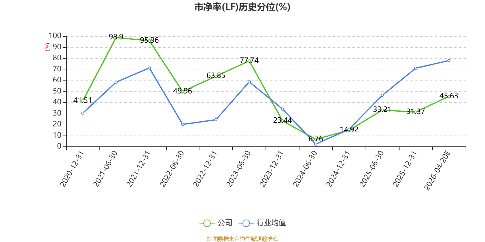 市盈率、市净率为负时,不显示当期分位数,会导致折线图中断。