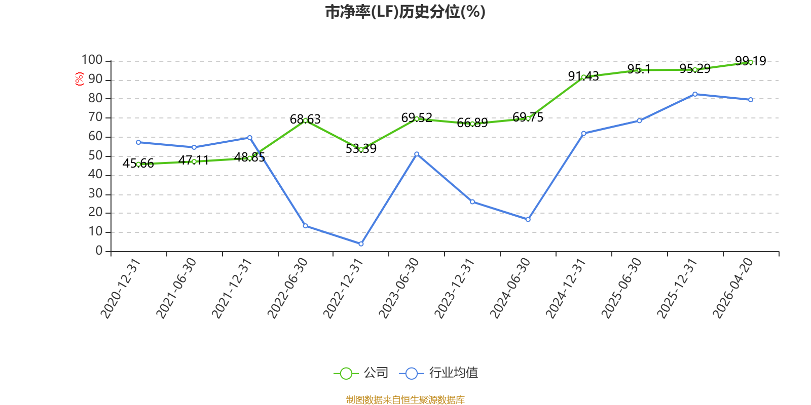市盈率、市净率为负时,不显示当期分位数,会导致折线图中断。