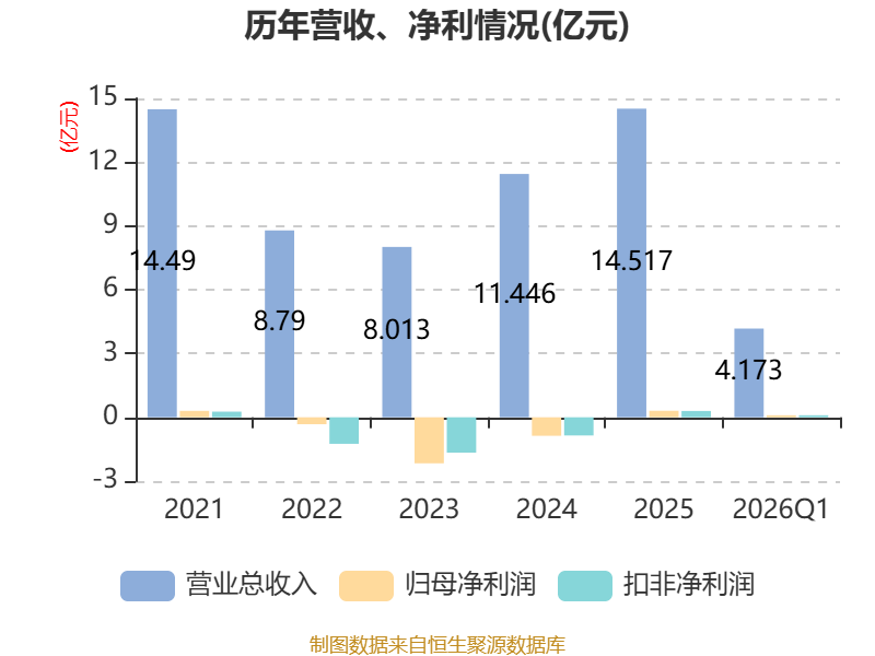 截至2026年一季度末,公司经营活动现金流净额为-1.18亿元,同比减少7317.44万元;筹资活动现金流净额4415.47万元,同比减少7594.71万元;投资活动现金流净额371.24万元,上年同期为-98.37万元。