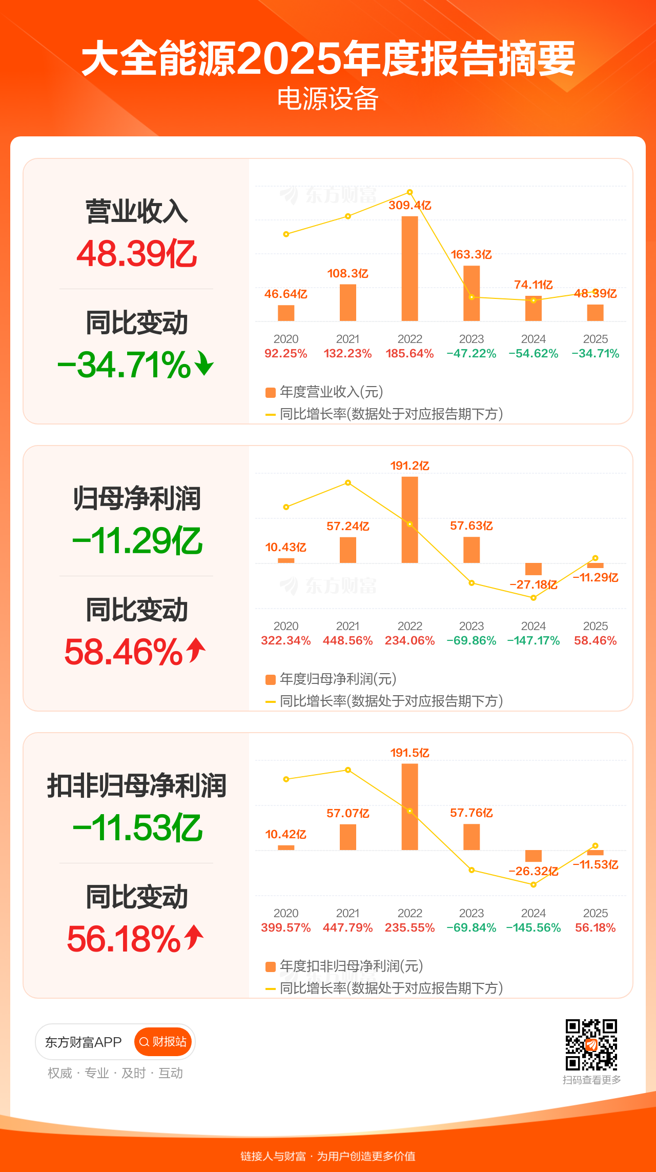 图解财报:大全能源全年归母净利润-11.29亿元,上年同期-27.18亿元