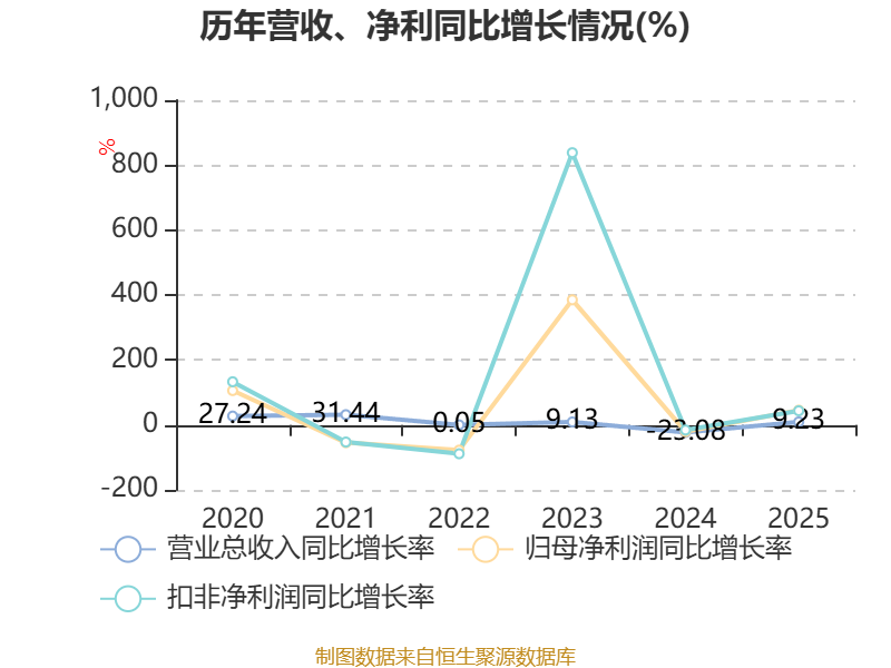 资产重大变化方面,截至2025年末,公司交易性金融资产合计较上年末增加1095.29%,占公司总资产比重上升2.76个百分点;固定资产较上年末减少5.43%,占公司总资产比重下降2.58个百分点;货币资金较上年末减少8.77%,占公司总资产比重下降2.38个百分点;在建工程合计较上年末增加8.7%,占公司总资产比重上升1.06个百分点。