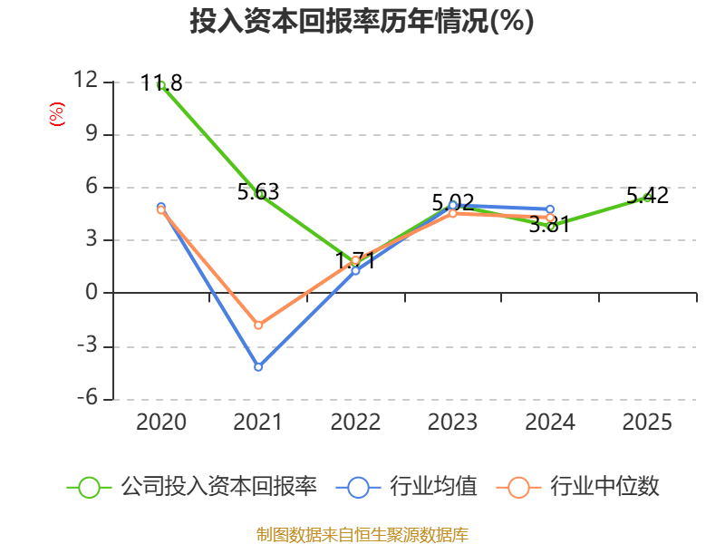 数据显示,2025年公司加权平均净资产收益率为8.21%,较上年同期上升2.36个百分点。公司2025年投入资本回报率为5.42%,较上年同期上升1.61个百分点。