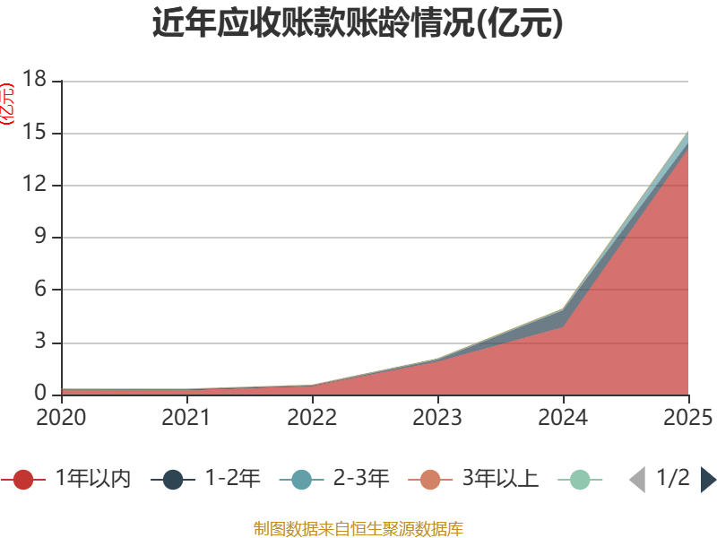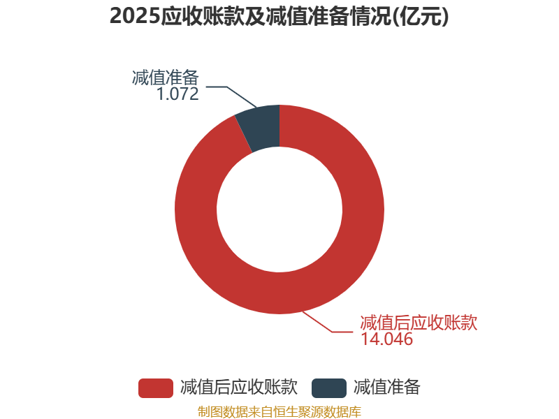 从应收账款账龄结构来看,截至2025年末,公司账龄在1年以内的应收账款余额为14.09亿元,较上年末增长10.23亿元,占应收账款总额比例为93.19%,较上年末上升14.82个百分点。