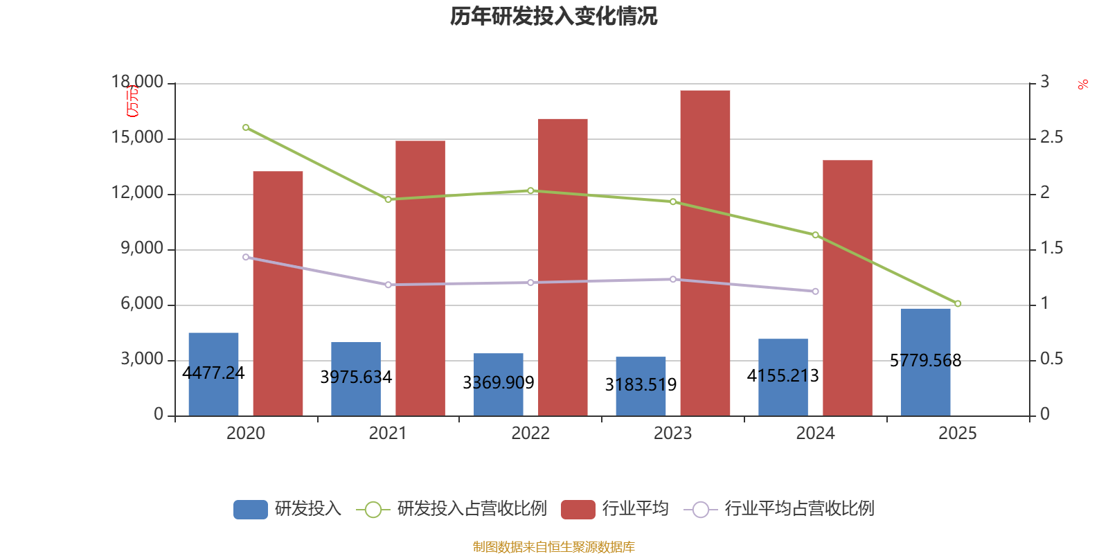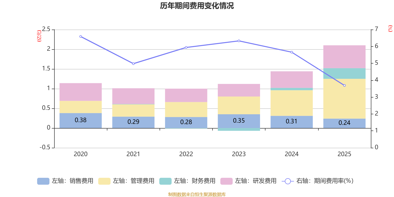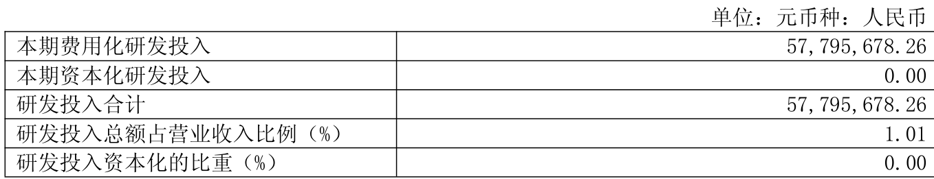 2025年全年,公司研发投入金额为5779.57万元,同比增长39.09%;研发投入占营业收入比例为1.01%,相比上年同期下降0.62个百分点。此外,公司全年研发投入资本化率为0%。
