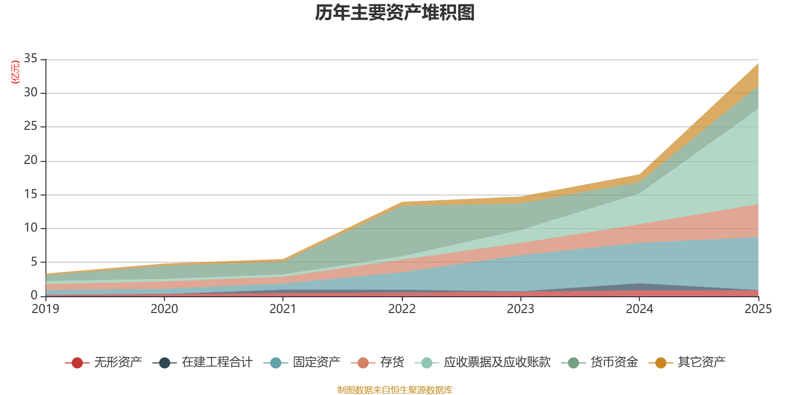 资产重大变化方面,截至2025年末,公司应收票据及应收账款较上年末增加208.28%,占公司总资产比重上升15.52个百分点;固定资产较上年末增加30.58%,占公司总资产比重下降10.52个百分点;在建工程合计较上年末减少94.69%,占公司总资产比重下降5.71个百分点;使用权资产较上年末增加739.53%,占公司总资产比重上升2.84个百分点。