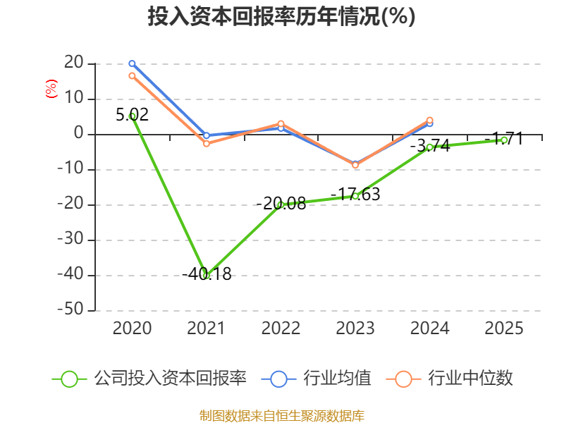 数据显示,2025年公司加权平均净资产收益率为-4.03%,较上年同期上升12.47个百分点。公司2025年投入资本回报率为-1.71%,较上年同期上升2.03个百分点。
