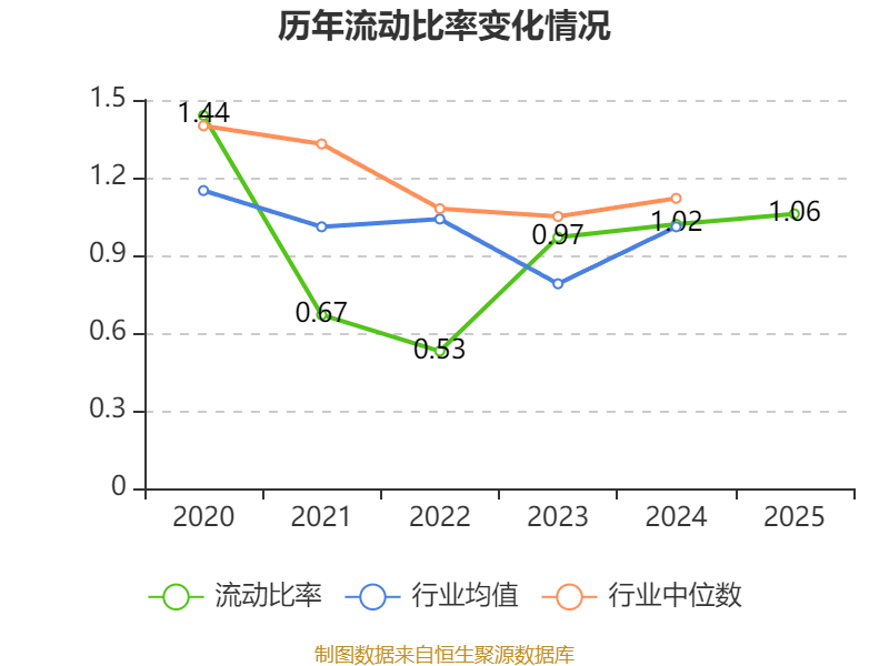 2025年,公司流动比率为1.06,速动比率为0.62。