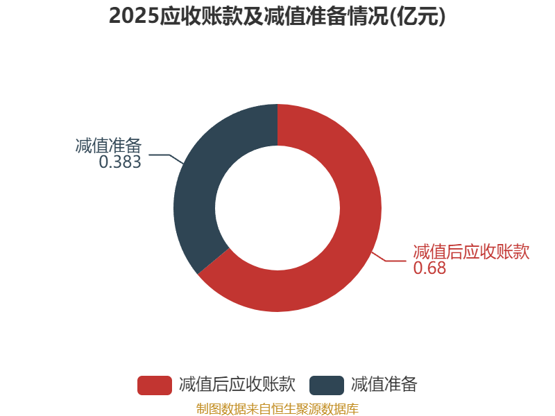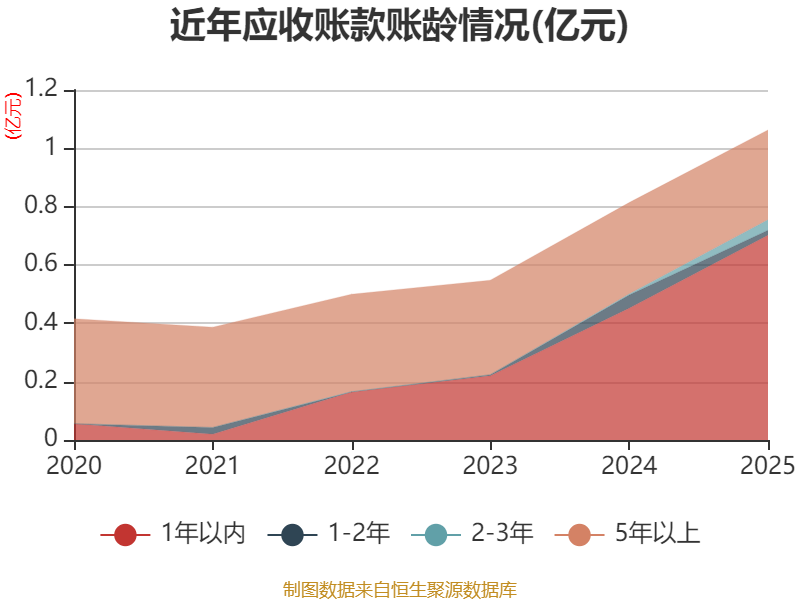 从应收账款账龄结构来看,截至2025年末,公司账龄在1年以内的应收账款余额为0.7亿元,较上年末增长2503.89万元,占应收账款总额比例为66.02%,较上年末上升10.49个百分点。