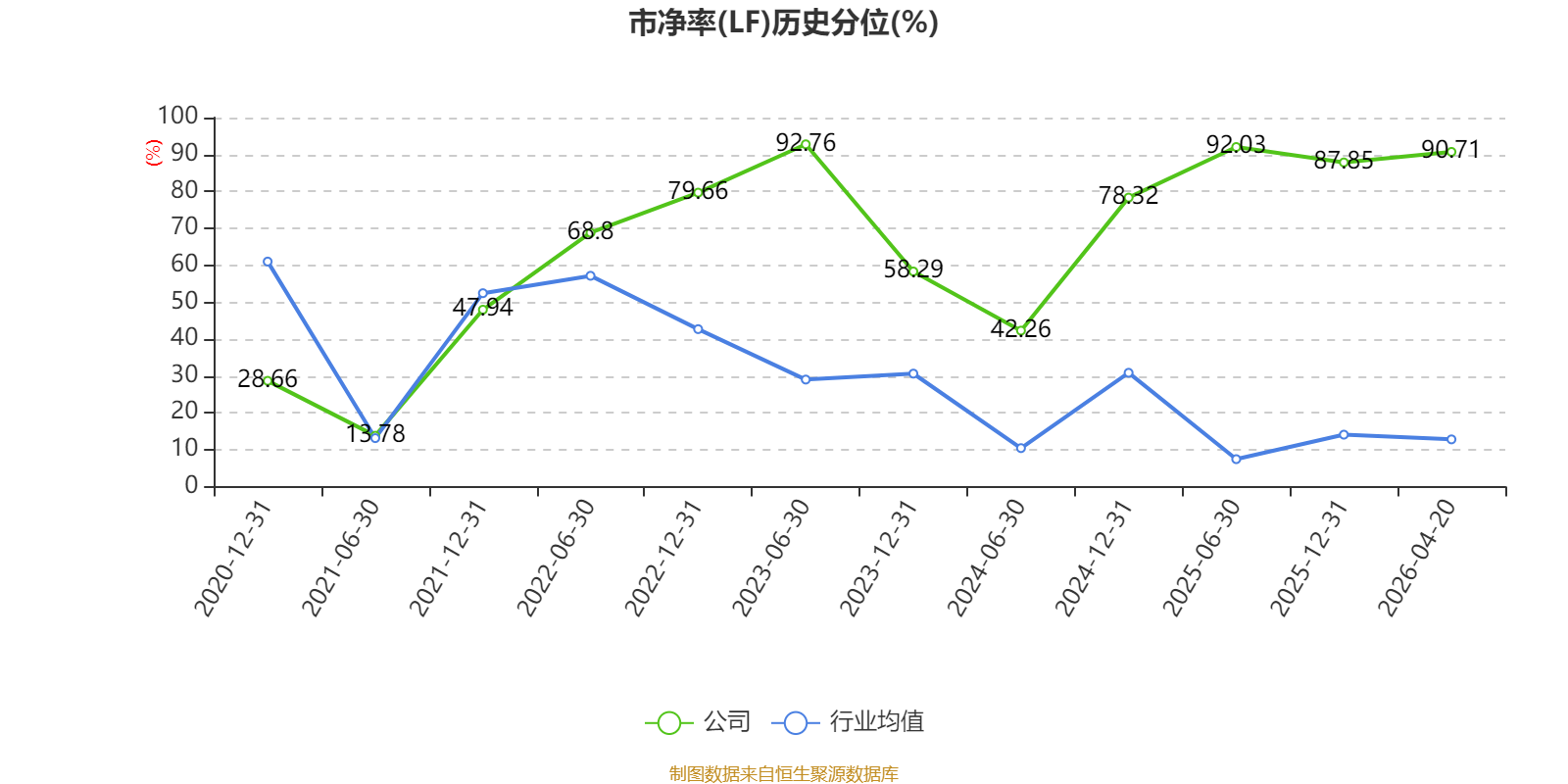 市盈率、市净率为负时,不显示当期分位数,会导致折线图中断。