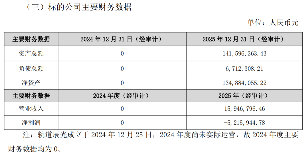 顺灏股份公告中披露,轨道辰光从2025年起实际运营,2025年营收为1594.68万元,亏损521.59万元。