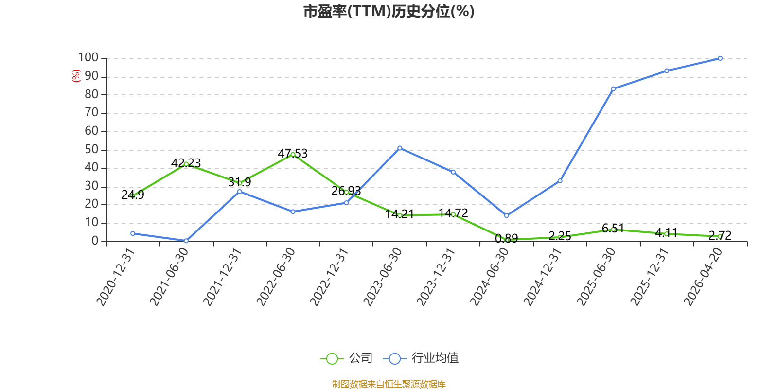 市盈率、市净率为负时,不显示当期分位数,会导致折线图中断。