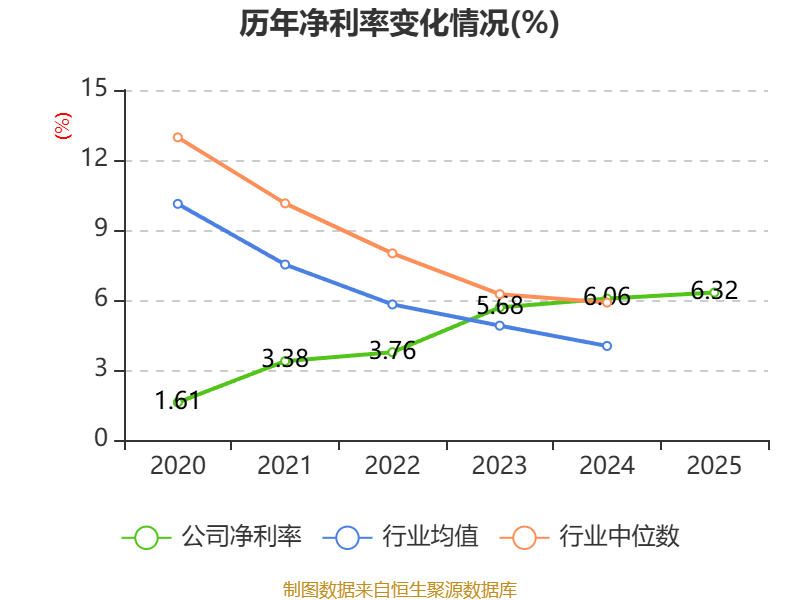 数据显示,2025年公司加权平均净资产收益率为6.64%,较上年同期上升0.88个百分点。公司2025年投入资本回报率为4.83%,较上年同期上升0.78个百分点。