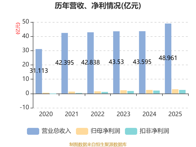 2025年全年,公司研发投入金额为2.04亿元,同比增长16.07%;研发投入占营业收入比例为4.17%,相比上年同期上升0.07个百分点。此外,公司全年研发投入资本化率为0%。