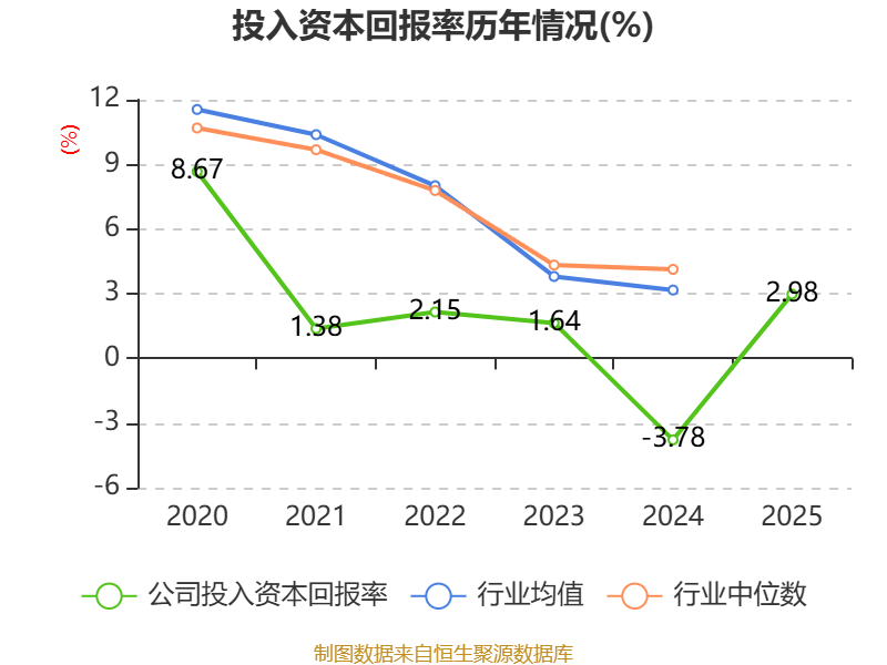 数据显示,2025年公司加权平均净资产收益率为4.59%,较上年同期上升13.18个百分点。公司2025年投入资本回报率为2.98%,较上年同期上升6.76个百分点。