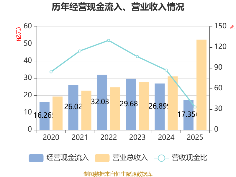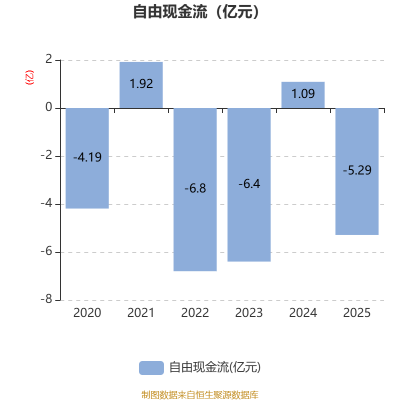 截至2025年,公司经营活动现金流净额为-11.99亿元,同比减少16.98亿元;筹资活动现金流净额13.19亿元,同比增加11.81亿元;投资活动现金流净额-2.34亿元,上年同期为-3.59亿元。