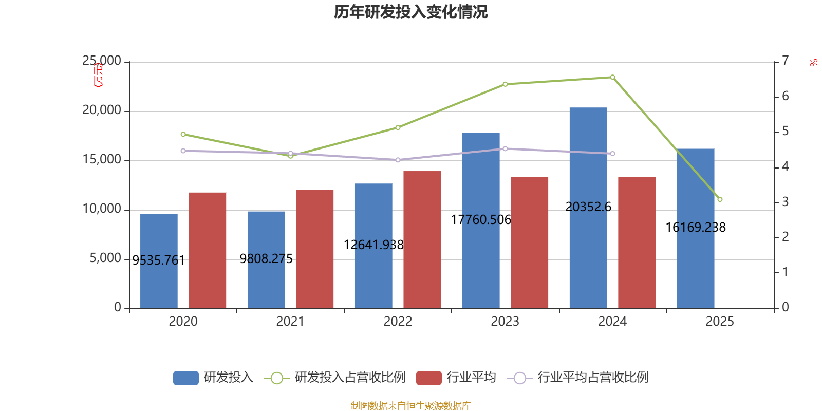 2025年全年,公司研发投入金额为1.62亿元,同比下降20.55%;研发投入占营业收入比例为3.09%,相比上年同期下降3.47个百分点。此外,公司全年研发投入资本化率为0%。