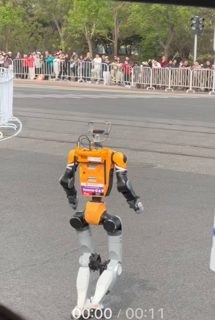 比如,被网友称为“最萌小鼻嘎”的机器人“小派”,身高只有75厘米。去年参赛时,它跑到100米就“罢工”了。到了今年,“小派”迈着小碎步完成了10公里。对它自己而言,这也是一种进步。