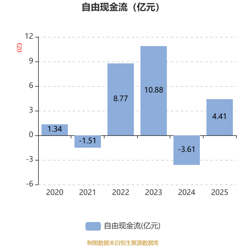 2025年全年,公司研发投入金额为2.26亿元,同比下降8.51%;研发投入占营业收入比例为4.17%,相比上年同期下降0.41个百分点。此外,公司全年研发投入资本化率为0%。