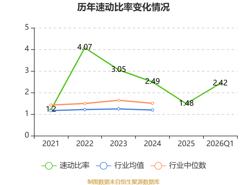 2026年第一季度,公司流动比率为2.94,速动比率为2.42。