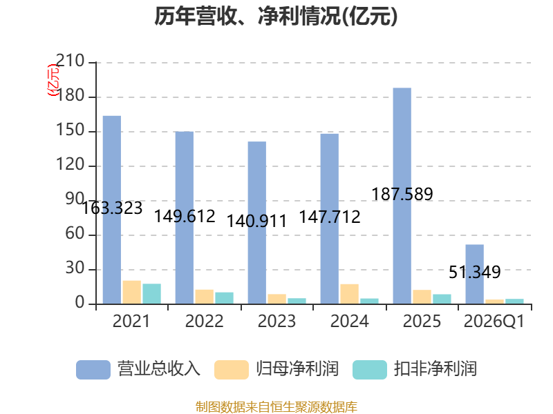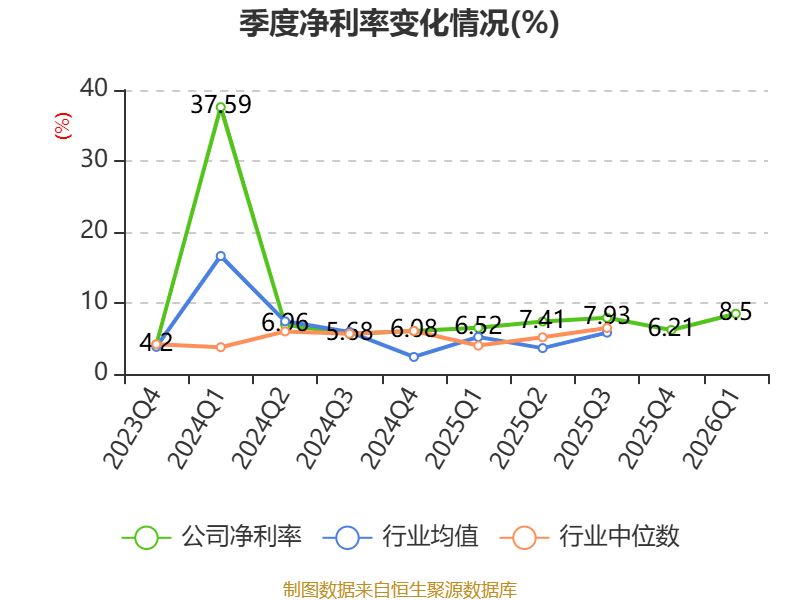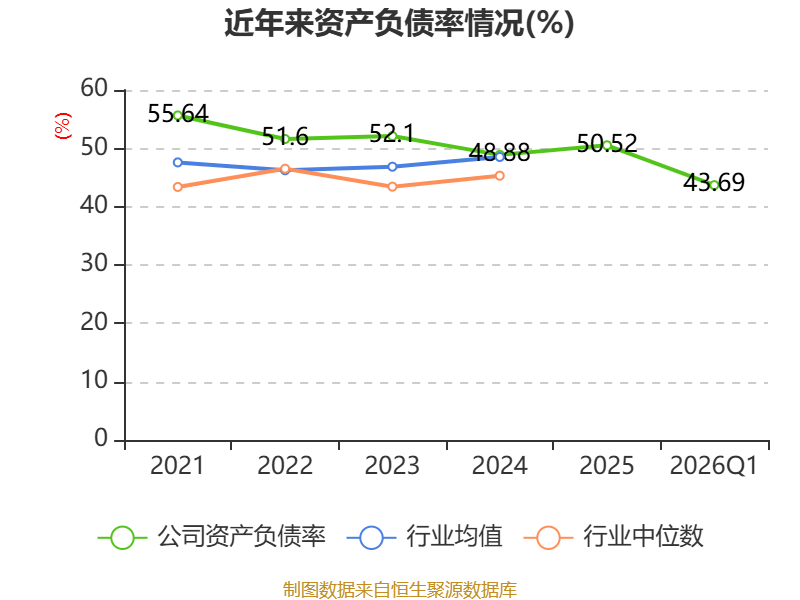 负债重大变化方面,截至2026年一季度末,公司应付票据及应付账款较上年末增加5.8%,占公司总资产比重下降1.62个百分点;长期借款较上年末减少10.73%,占公司总资产比重下降1.43个百分点;应付职工薪酬较上年末减少25.31%,占公司总资产比重下降1.4个百分点;一年内到期的非流动负债较上年末减少24.53%,占公司总资产比重下降1.28个百分点。