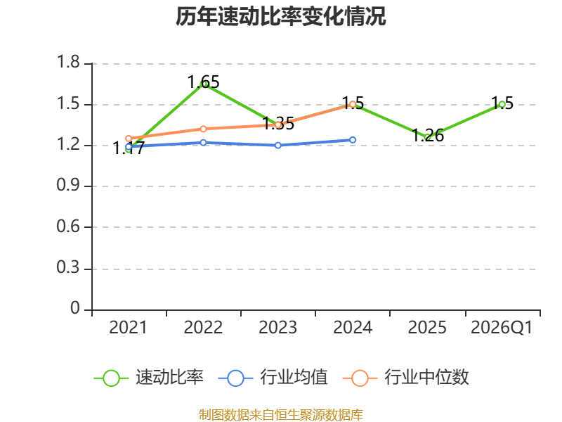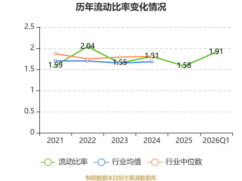 2026年第一季度,公司流动比率为1.91,速动比率为1.5。