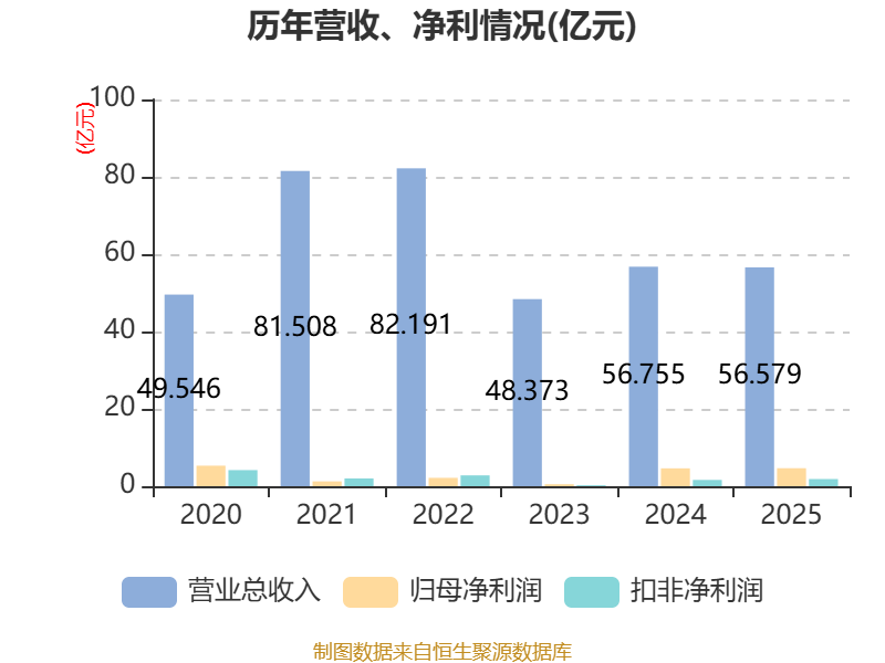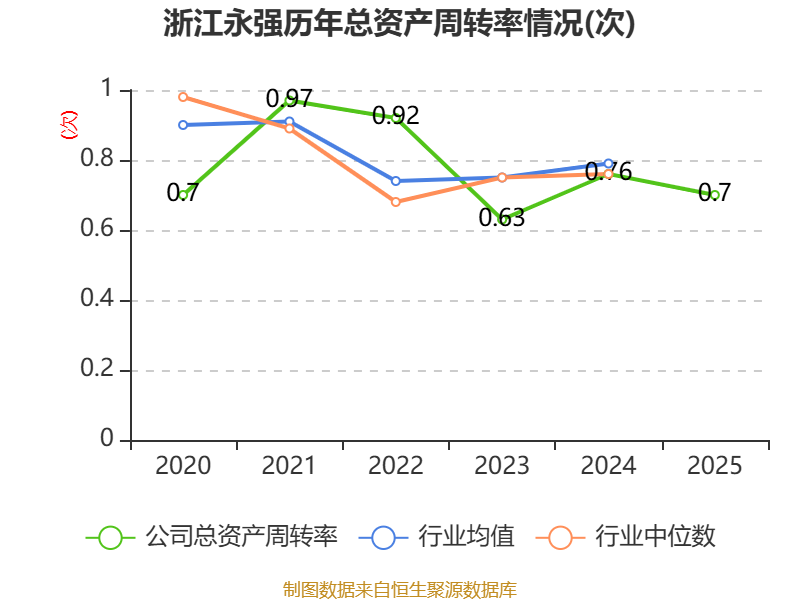 中证智能财讯浙江永强(002489)4月21日披露2025年年度报告。2025年,公司实现营业总收入56.58亿元,同比下降0.31%;归母净利润4.65亿元,同比增长0.67%;扣非净利润1.85亿元,同比增长14.19%;经营活动产生的现金流量净额为4.67亿元,同比增长92.36%;报告期内,浙江永强基本每股收益为0.21元,加权平均净资产收益率为10.87%。公司2025年度分配预案为:拟向全体股东每10股派现0.6元(含税)。