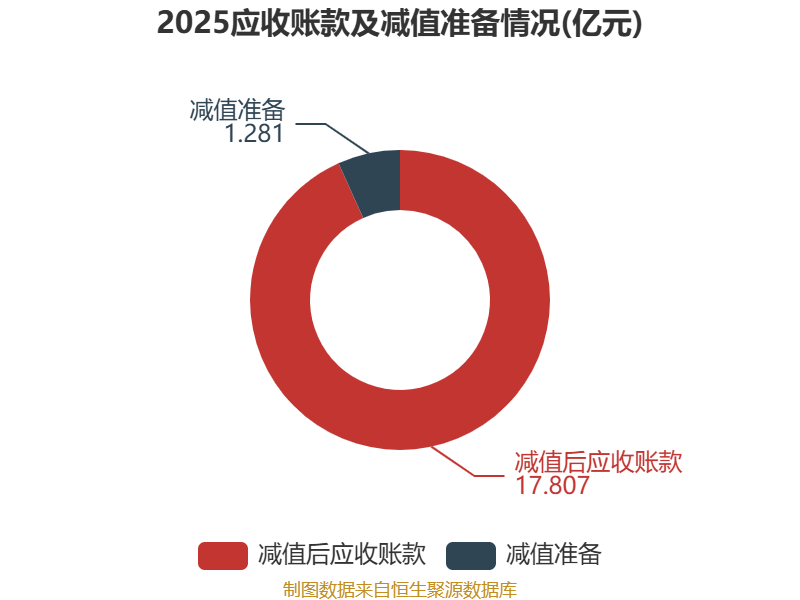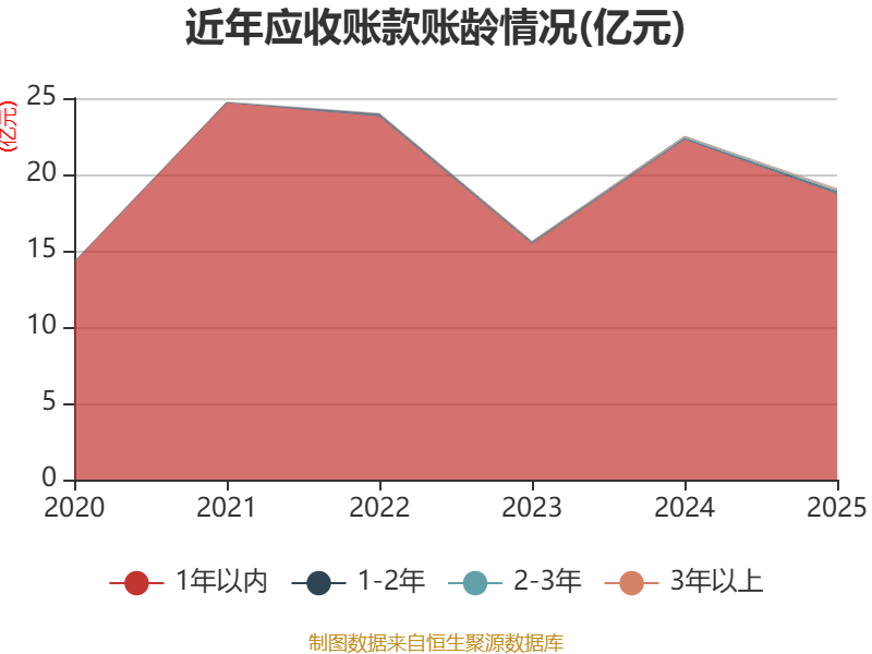 从应收账款账龄结构来看,截至2025年末,公司账龄在1年以内的应收账款余额为18.69亿元,较上年末下降3.57亿元,占应收账款总额比例为97.92%,较上年末下降0.94个百分点。