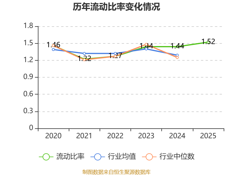 2025年,公司流动比率为1.52,速动比率为1.17。