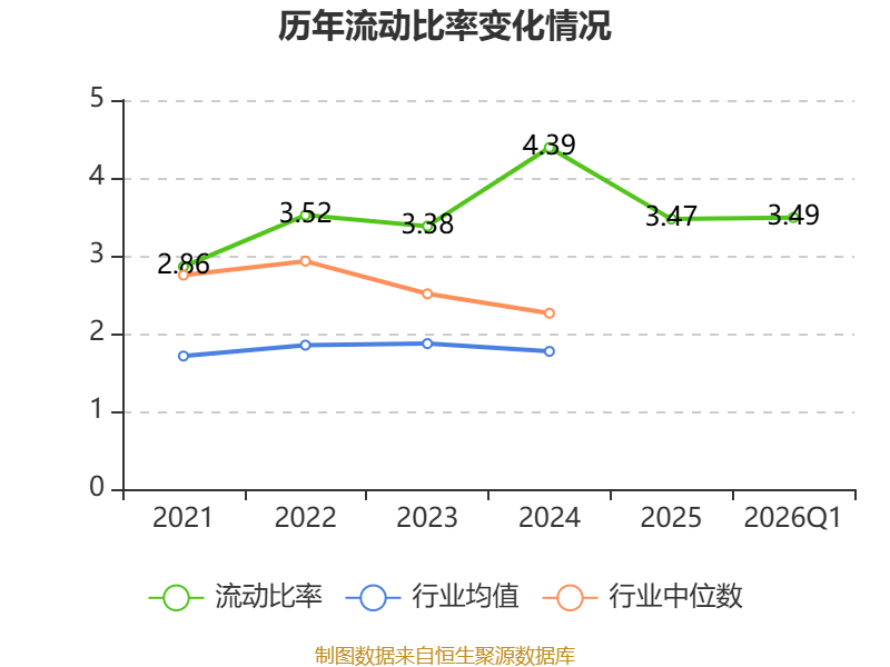 2026年第一季度,公司流动比率为3.49,速动比率为2.99。