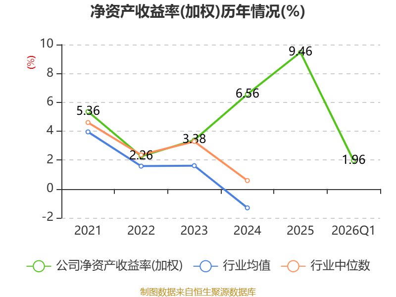 盈利能力方面, 2026年一季度公司加权平均净资产收益率为1.96%,同比上升0.15个百分点。公司2026年第一季度投入资本回报率为1.82%,较上年同期上升0.37个百分点。