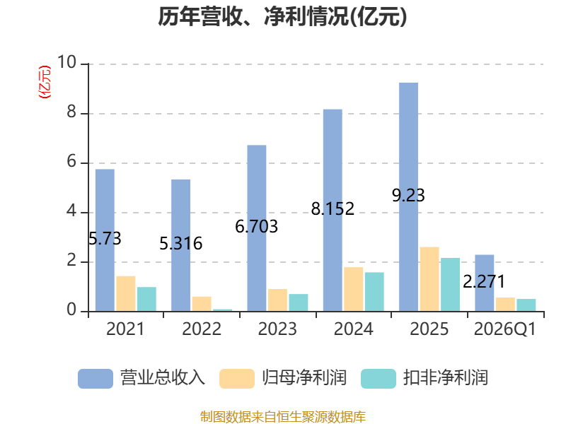 中证智能财讯虹软科技(688088)4月21日披露2026年第一季度报告。公司实现营业总收入2.27亿元,同比增长8.54%;归母净利润5408.36万元,同比增长8.90%;扣非净利润4838.1万元,同比增长20.02%;经营活动产生的现金流量净额为-796.03万元,上年同期为3427.95万元;报告期内,虹软科技基本每股收益为0.13元,加权平均净资产收益率为1.96%。