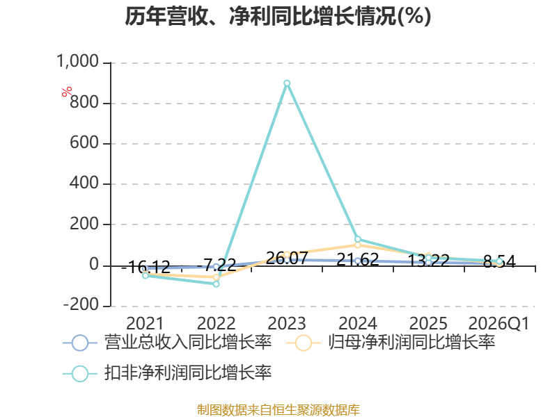 负债重大变化方面,截至2026年一季度末,公司应付职工薪酬较上年末减少63.56%,占公司总资产比重下降1.57个百分点;合同负债较上年末减少18.9%,占公司总资产比重下降0.68个百分点;其他应付款(含利息和股利)较上年末增加11.22%,占公司总资产比重上升0.1个百分点;应付票据及应付账款较上年末增加17.19%,占公司总资产比重上升0.07个百分点。