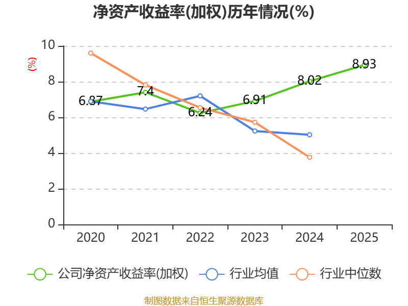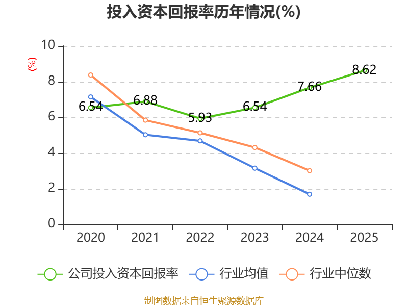 数据显示,2025年公司加权平均净资产收益率为8.93%,较上年同期上升0.91个百分点。公司2025年投入资本回报率为8.62%,较上年同期上升0.96个百分点。