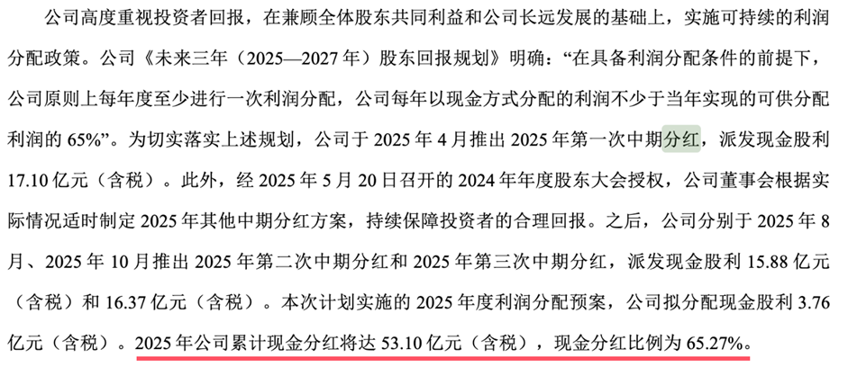 充裕的现金储备,为其在行业低谷期持续维持研发投入、推进全球化布局提供了坚实缓冲。分红政策则延续了一贯的高回报风格,2025年公司现金分红53.1亿元,现金分红比例达65.27%,上市以来累计分红更是达到IPO募资额的6倍。不过这种持续分红能力,更多源于过去多年积累的盈利与现金流沉淀,而非当期业绩的实质性改善。