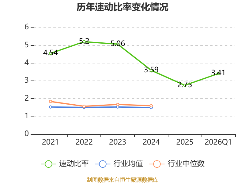2026年第一季度,公司流动比率为4.18,速动比率为3.41。