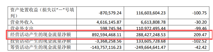 与业绩表现形成鲜明对比的,是这份财报最亮眼的数据——经营活动现金流净额8.93亿元,同比暴增209.47%。在A股食品饮料行业,如此强劲的现金流表现通常属于茅台、海天这样的超级现金牛。