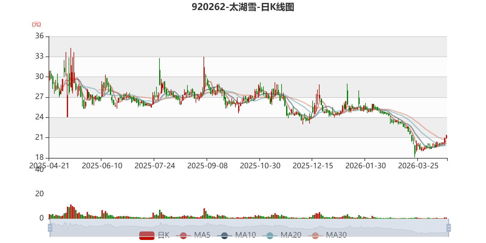 以4月20日收盘价计算,太湖雪目前市盈率(TTM)约为36.6倍,市净率(LF)约3.98倍,市销率(TTM)约2.38倍。