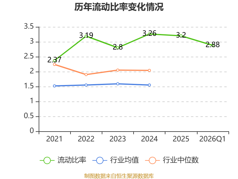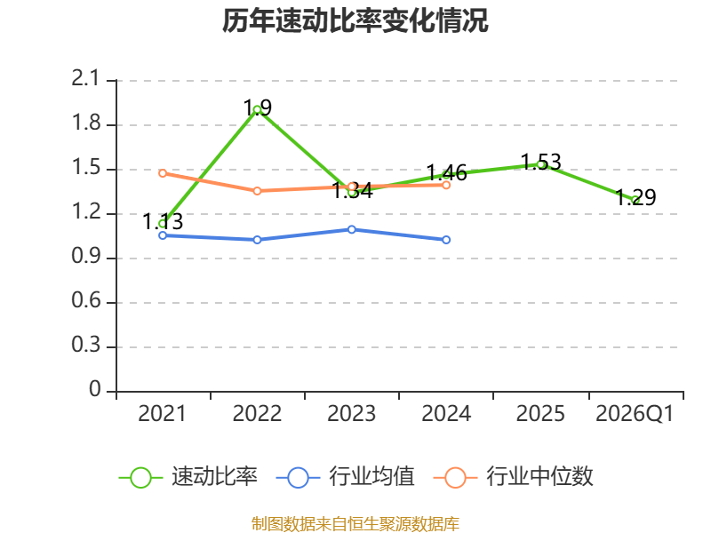 2026年第一季度,公司流动比率为2.88,速动比率为1.29。