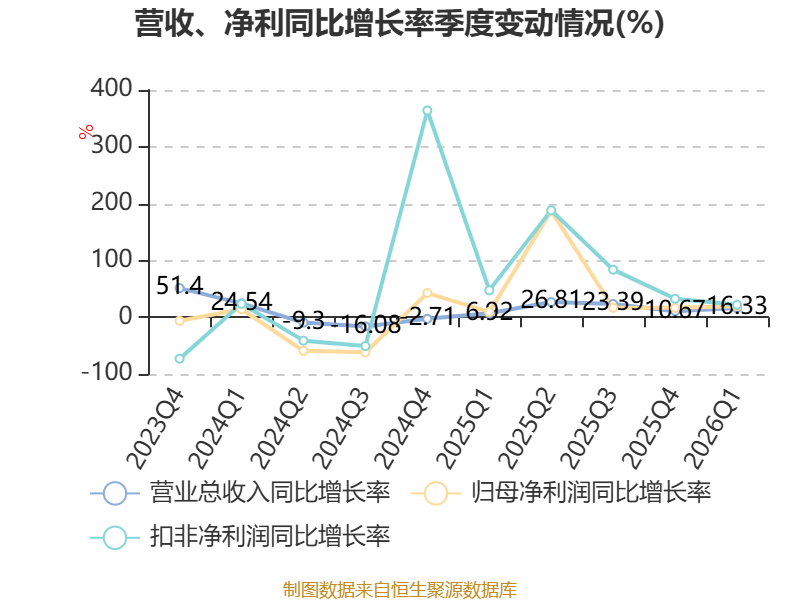 负债重大变化方面,截至2026年一季度末,公司应付票据及应付账款较上年末增加51.33%,占公司总资产比重上升2.2个百分点;短期借款较上年末增加30%,占公司总资产比重上升2.11个百分点;其他应付款(含利息和股利)较上年末减少26.41%,占公司总资产比重下降0.73个百分点;应付职工薪酬较上年末减少19.15%,占公司总资产比重下降0.71个百分点。