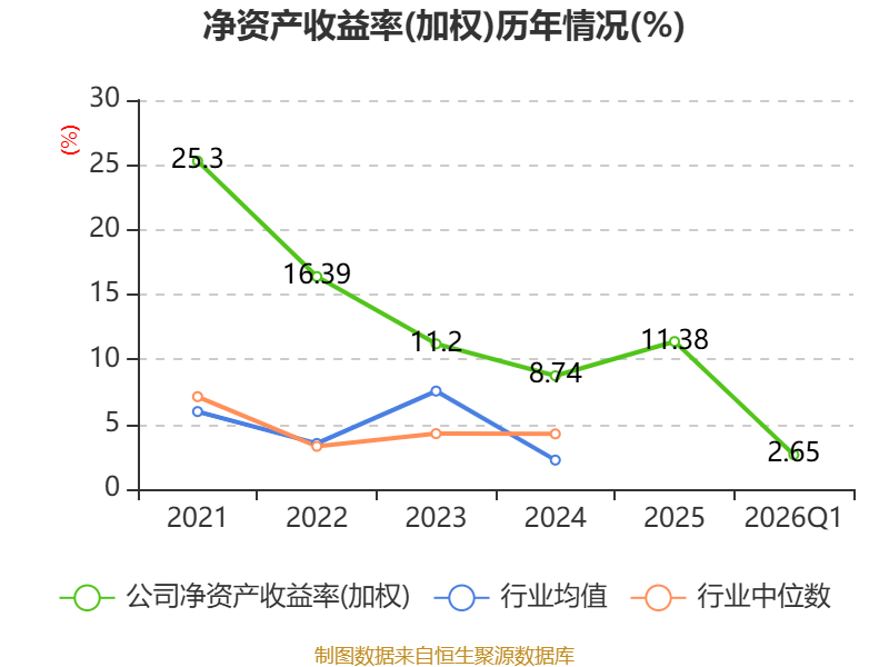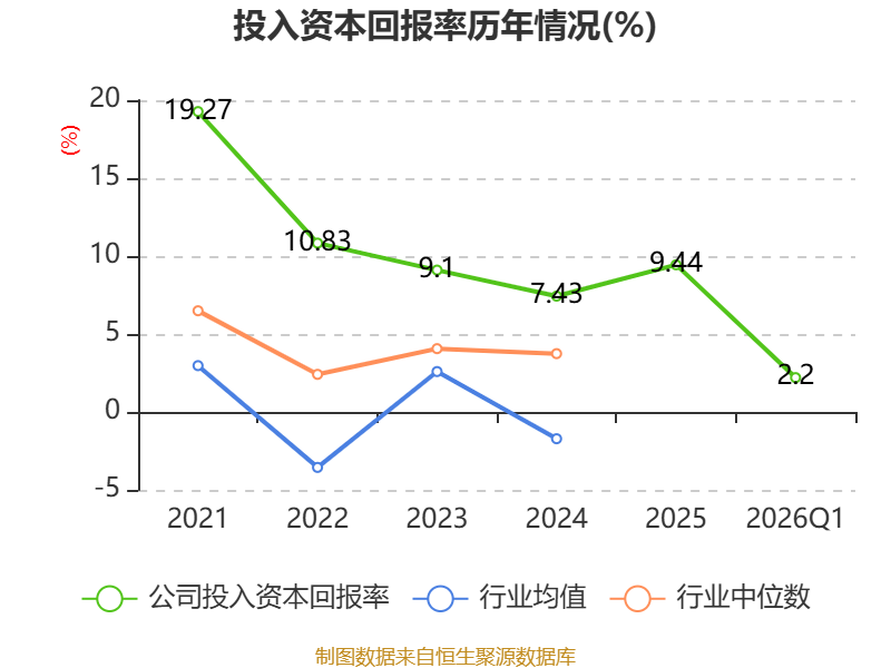 盈利能力方面, 2026年一季度公司加权平均净资产收益率为2.65%,同比上升0.21个百分点。公司2026年第一季度投入资本回报率为2.2%,较上年同期上升0.11个百分点。