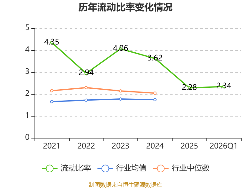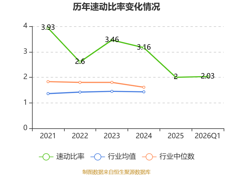 2026年第一季度,公司流动比率为2.34,速动比率为2.03。