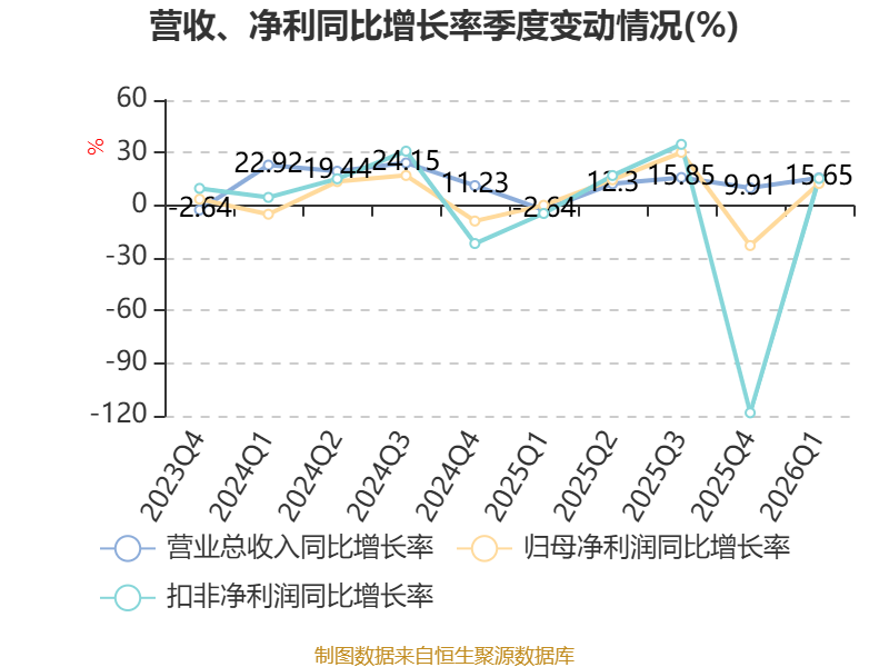 负债重大变化方面,截至2026年一季度末,公司短期借款较上年末减少42.2%,占公司总资产比重下降1个百分点;应付职工薪酬较上年末减少32.46%,占公司总资产比重下降0.75个百分点;长期借款占公司总资产的0.6%,上年末为0;应交税费较上年末增加21.01%,占公司总资产比重上升0.15个百分点。